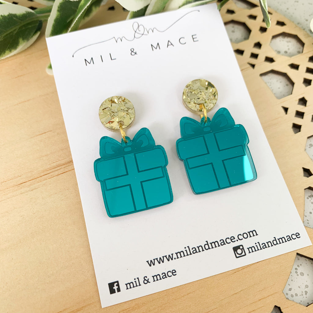 Christmas Present Mirrored Acrylic Dangle Earrings
