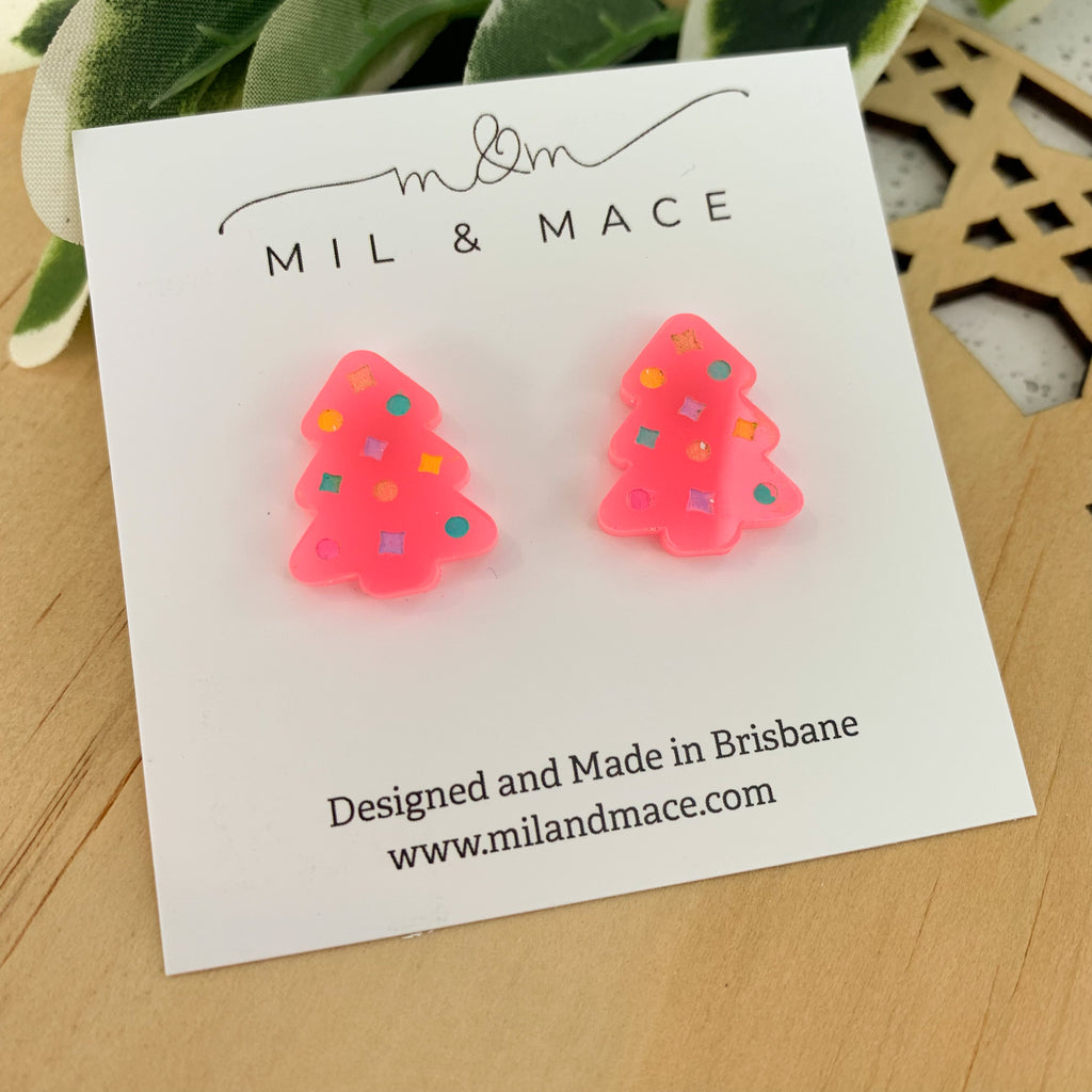 Christmas Trees Mini Neon pink 20mm Acrylic Stud Earrings