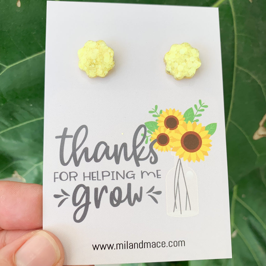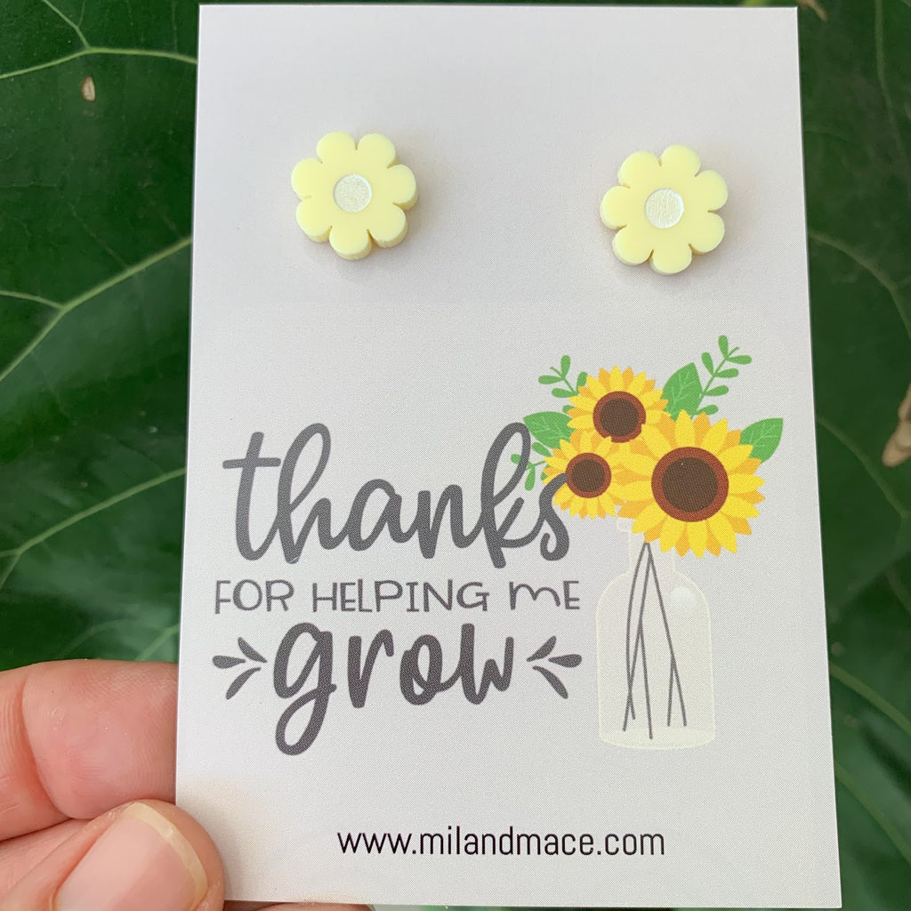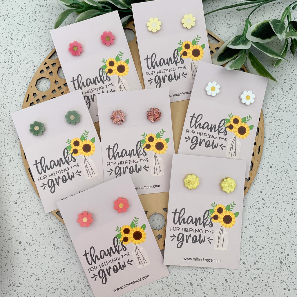 Educator Gift 'Thanks for helping me grow' Flower Stud Earrings
