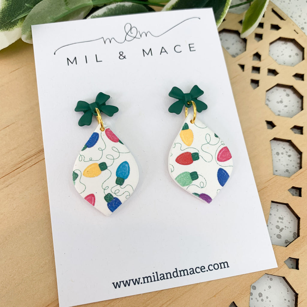 Lights Christmas Print Bauble Polymer Clay Dangle Earrings