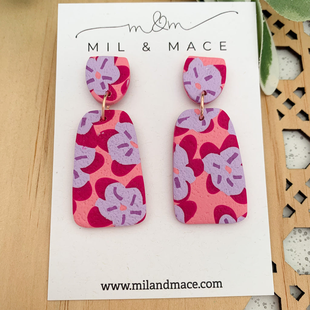 Pink, Purple and Fuchsia Floral Polymer Clay Dangle Earrings