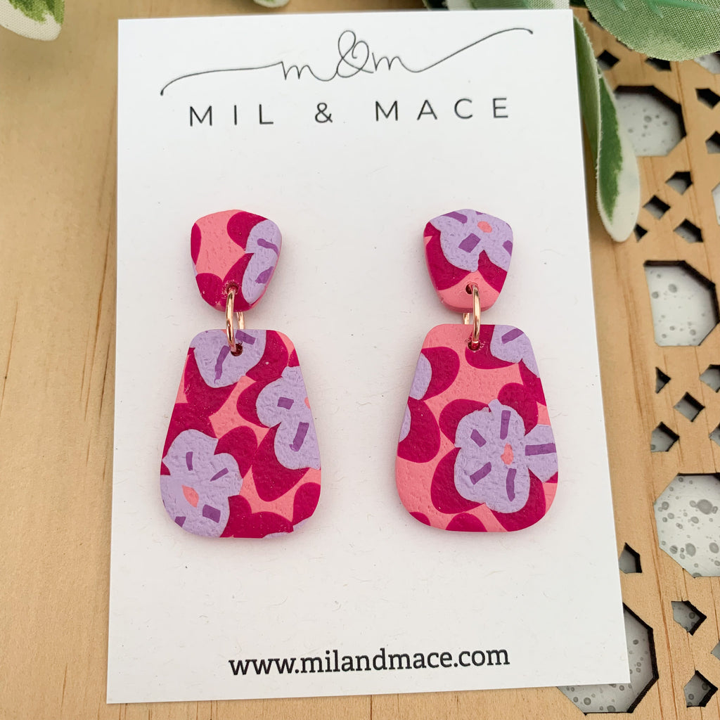 Pink, Purple and Fuchsia Floral Polymer Clay Dangle Earrings