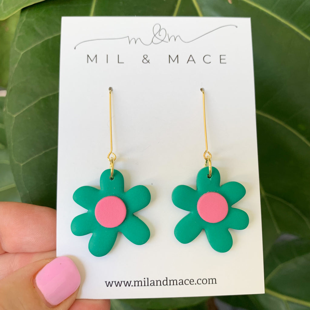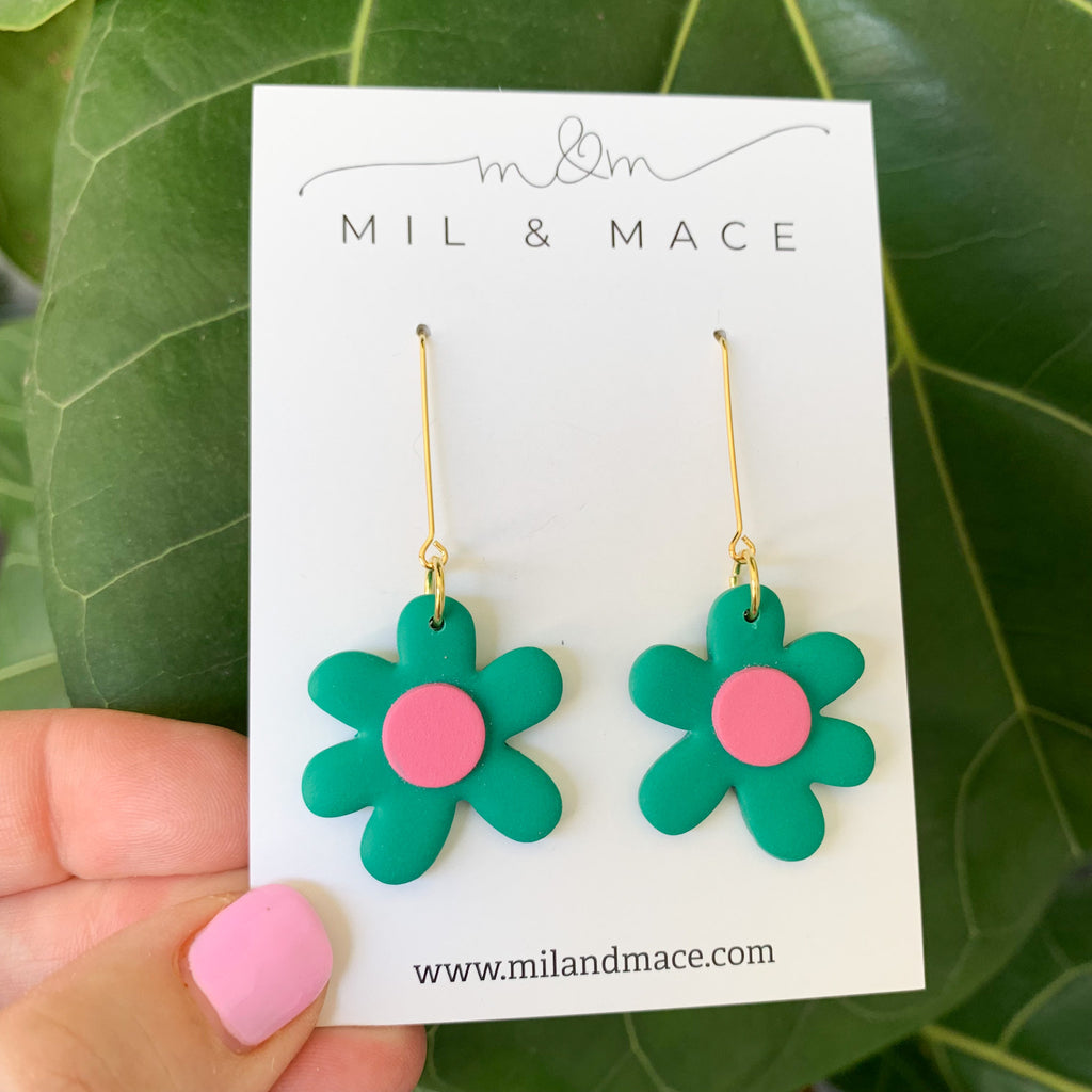 Flower Drops Polymer Clay Dangle Earrings