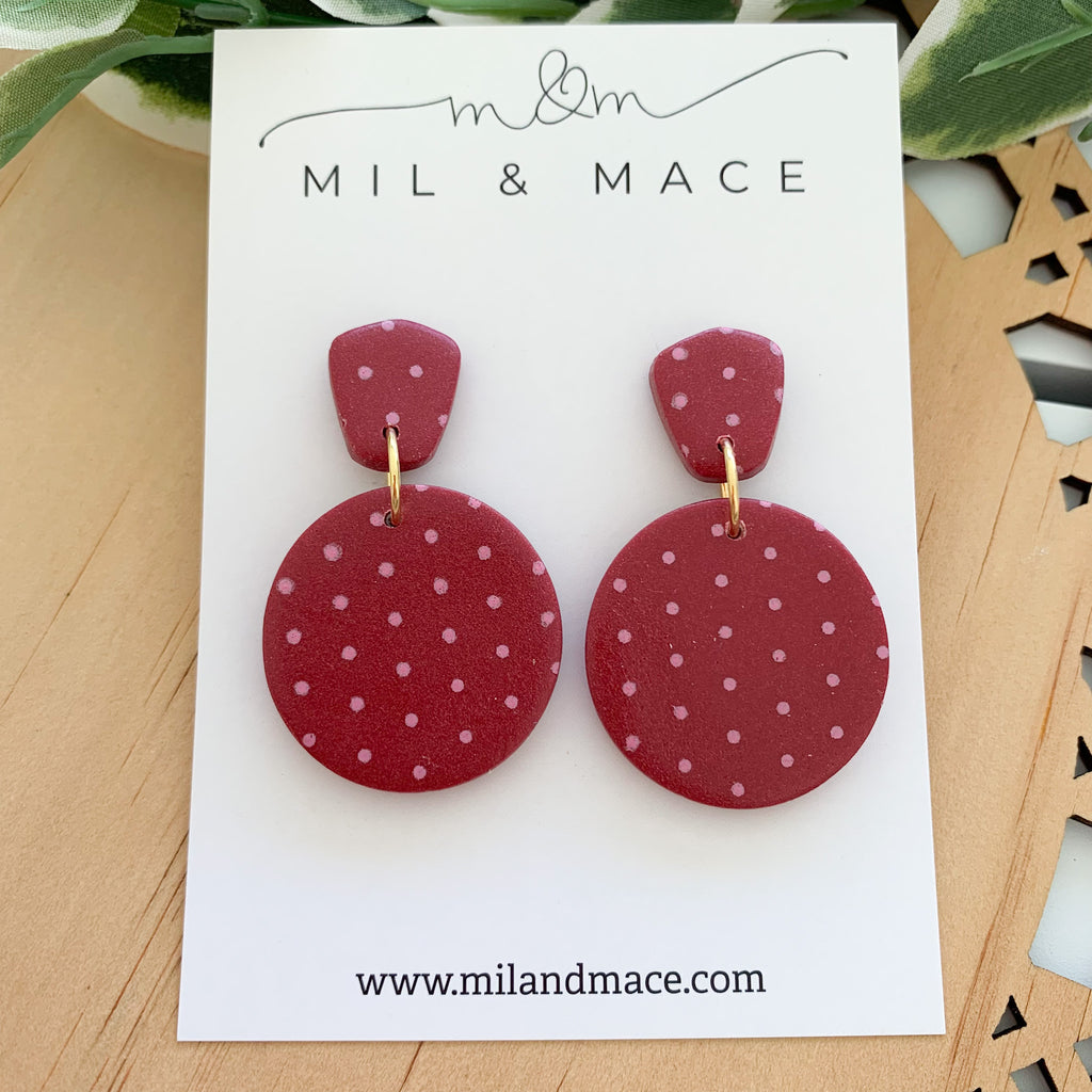 Polkadot Burgundy and Pink Polymer Clay Dangle Earrings
