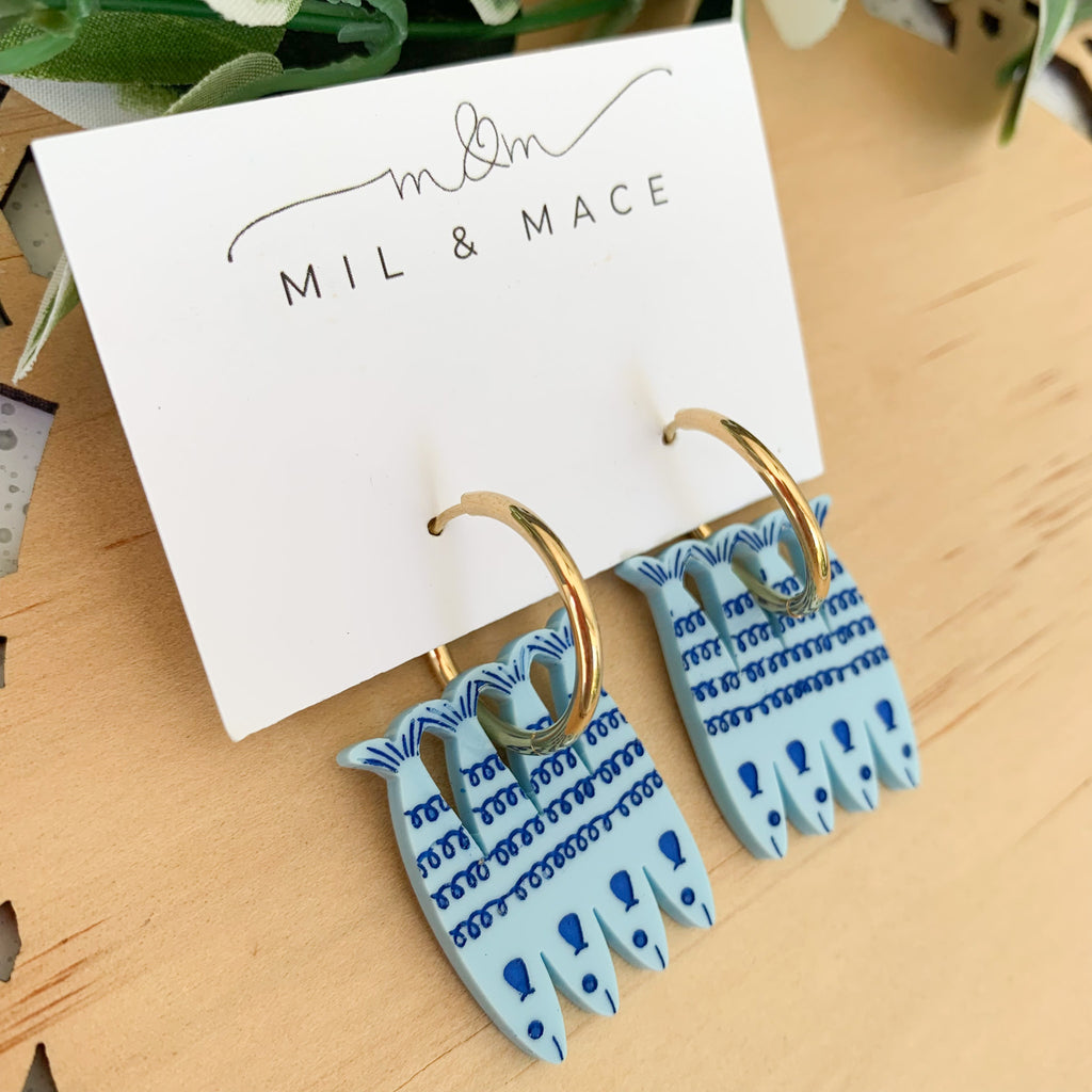 All of my earrings are made and designed in Brisbane.  While I make every effort to photograph pieces true to colour, they may vary slightly due to your screen settings.  Please note as these are handmade items, they may contain small flaws or differences.  Pattern placement on the pair you receive may differ slightly to the pair pictured.