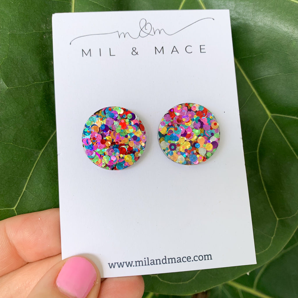 These earrings are made from resin making them comfortable and lightweight for everyday wear. Posts are surgical stainless steel making them perfect for sensitive ears and come with comfort backs.