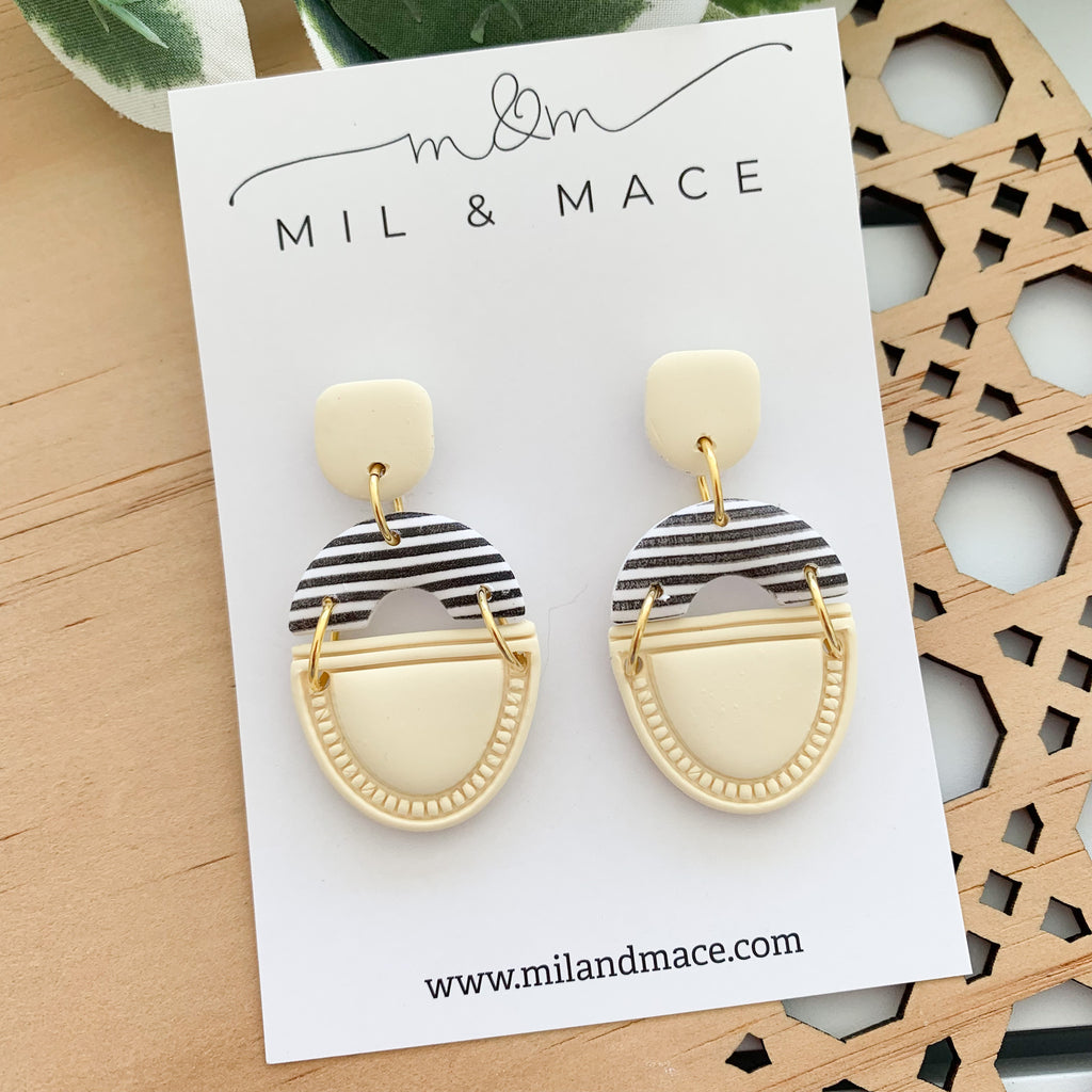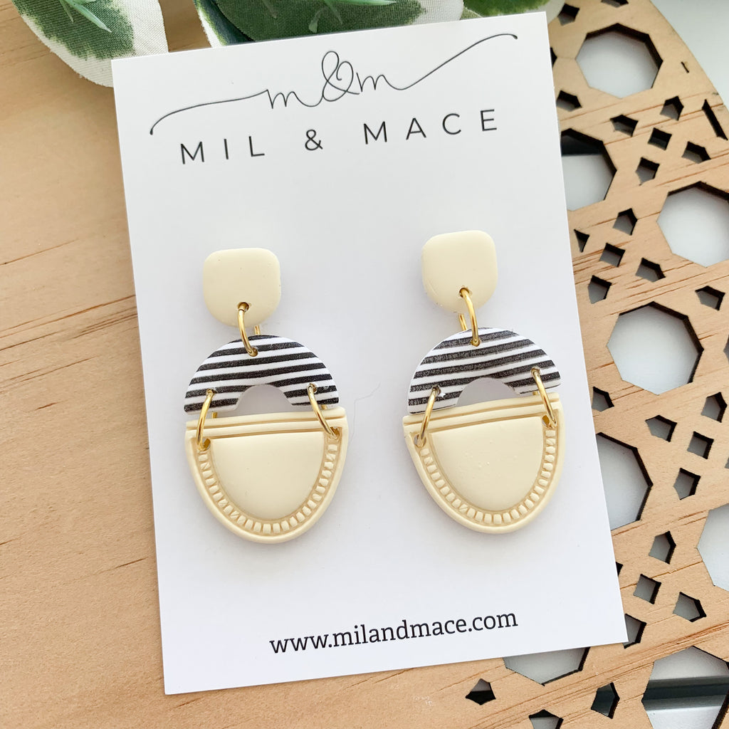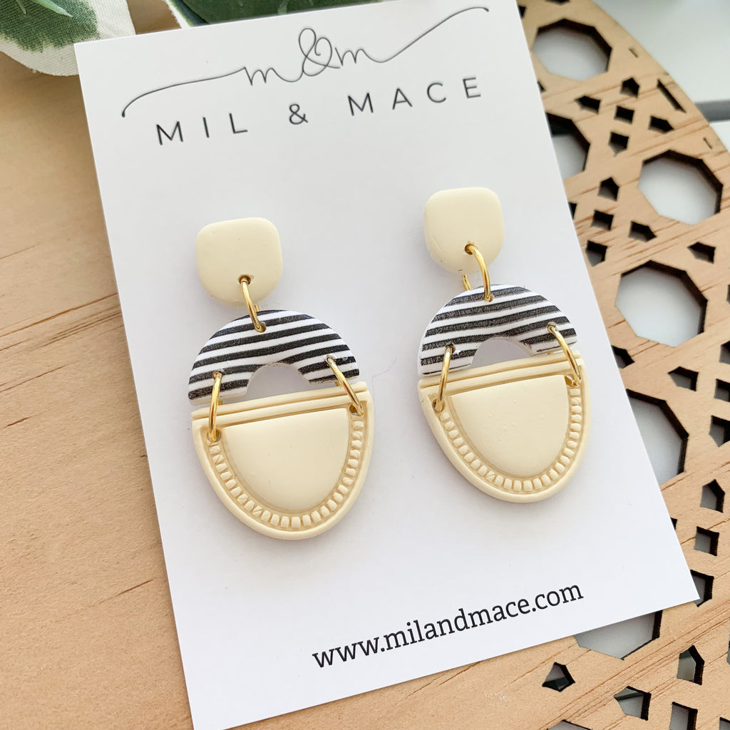 Yellow and Black and White Stripe Polymer Clay Dangle Earrings