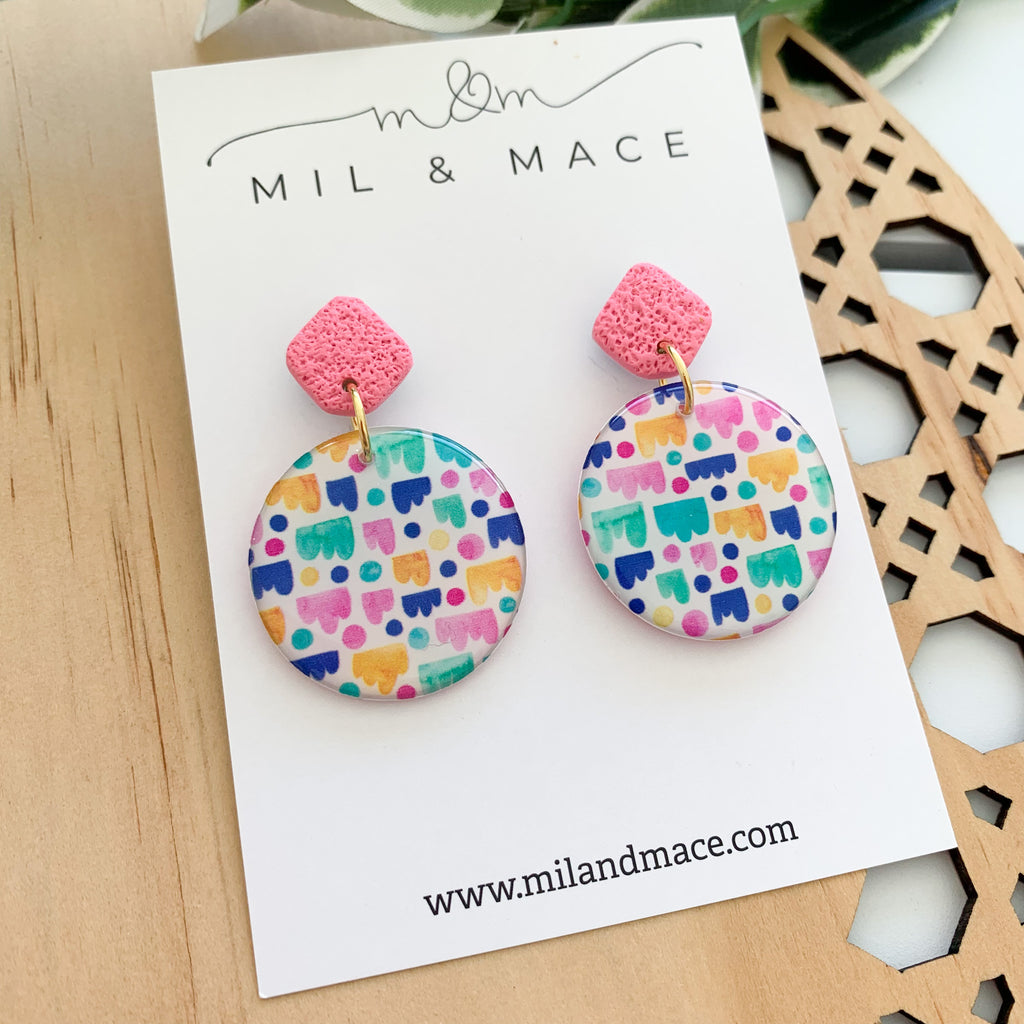All of my earrings are made and designed in Brisbane. While I make every effort to photograph pieces true to colour, they may vary slightly due to your screen settings. Please note as these are handmade items, they may contain small flaws or differences. Pattern placement on the pair you receive may differ slightly to the pair pictured.