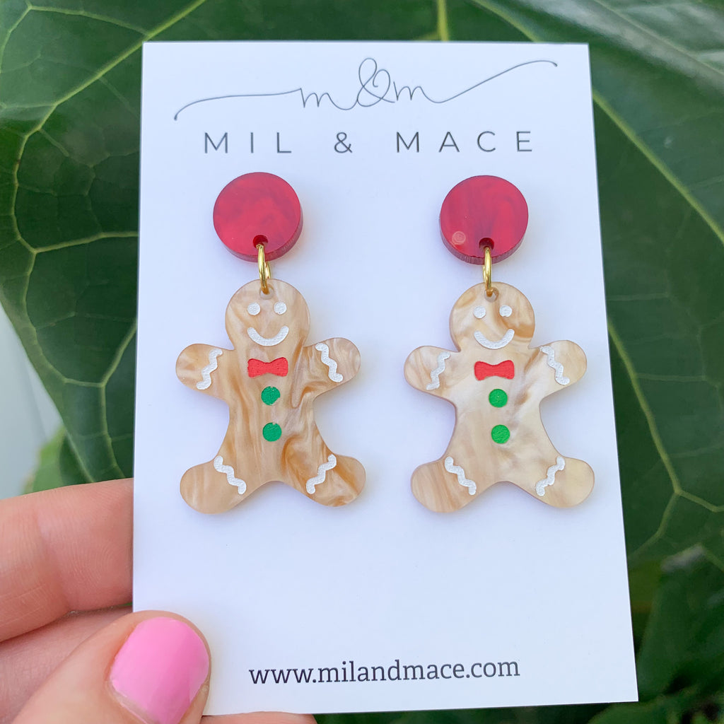 Gingerbread Man Acrylic Dangle Earrings